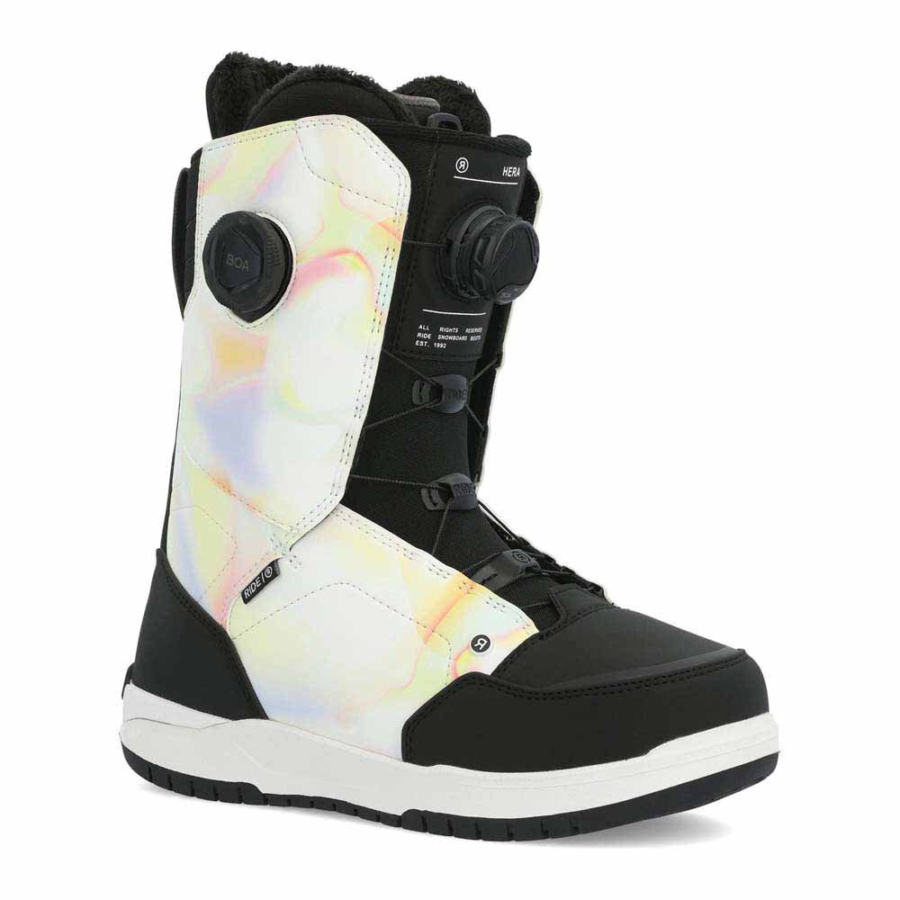 Las botas de snowboard RIDE Hera Woman en negro son una opción elegante y de alto rendimiento para las snowboarders. Estas botas están diseñadas para brindar un confort y un soporte óptimos mientras se conduce en las pistas.Las botas tienen un color negro elegante y moderno, lo que les da un aspecto fresco y sofisticado. El exterior está hecho de cuero duradero y materiales sintéticos, lo que garantiza un rendimiento duradero en cualquier condición climática. Las botas también están equipadas con un revestimiento impermeable, que mantiene los pies secos y cómodos durante todo el día.En el interior, las botas Hera están forradas con un forro de felpa suave y acogedor. Esto proporciona un calor adicional y ayuda a regular la temperatura dentro de las botas, manteniendo los pies calientes y cómodos incluso en condiciones más frías. Las botas también cuentan con un forro Intuition Plush, que se adapta a la forma de su pie para un ajuste personalizado y un mayor confort.En términos de rendimiento, las botas Hera están diseñadas con una calificación de flexión media, lo que proporciona un buen equilibrio entre soporte y flexibilidad. Esto permite una conducción receptiva y un control preciso en la tabla. Las botas también cuentan con una suela Michelin Fiberlite de alto rendimiento, que ofrece una excelente tracción y durabilidad.En general, las botas de snowboard RIDE Hera Woman en negro son una opción fantástica para las snowboarders que buscan estilo, rendimiento y comodidad. Con su diseño elegante, características avanzadas y construcción duradera, estas botas seguramente mejorarán su experiencia de snowboard en la montaña.